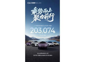 廣汽集團1-2月累計銷量20.31萬輛,自主品牌海外累計銷量同比增長86%