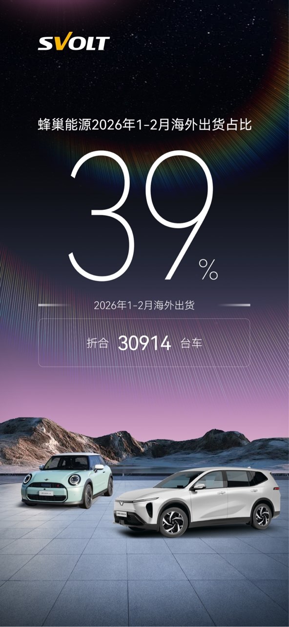 2026年1-2月,蜂巢能源的海外戰(zhàn)略交出了一份亮眼的成績單。最新數(shù)據(jù)顯示,今年1-2月,公司海外出貨量累計達1.66GWh,折合配套超3萬輛新能源汽車,海外出貨占總出貨比例已進一步提升至39%。這一數(shù)據(jù)不僅延續(xù)了2025年的高增長態(tài)勢,更標志著以創(chuàng)新為基因的蜂巢能源,正將“死磕海外”的戰(zhàn)略藍圖加速轉(zhuǎn)化為實打?qū)嵉娜蚴袌龇蓊~。